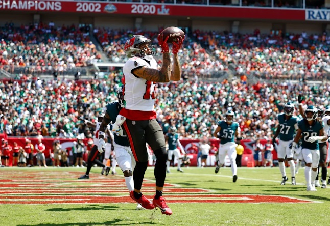 Evans was Mayfield's favorite target after the veteran receiver had only three passes thrown his way against Denver. Mayfield threw 15 passes in his direction, resulting in eight receptions for 94 yards and a score. Evans caught an eight-yard pass on the first play of the game, then finished that opening drive with a two-yard touchdown catch, the 97th of his career. He now ranks 12th in league history in that category.