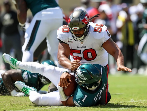 Tampa Bay's defense came out of the gate hot, too, forcing three-and-outs on each of the Eagles' first three possessions. LB Lavonte David led the charge with a team-high eight tackles, two of which killed drives on third downs, 2.0 sacks, a pass defensed and a critical forced fumble in the third quarter. Anthony Nelson, Logan Hall, Vita Vea and Yaya Diaby all got to Eagles QB Jalen Hurts as well, as the defense racked up a season-best six sacks. "He's our warrior," said Bowles of David. "He's our captain over there. He gets things done."