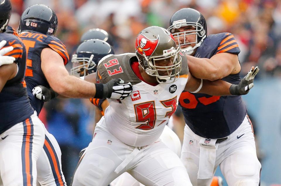 On defense, the Bucs played without their leading tackler, LB Lavonte David (hamstring) but still kept the league's 10th-ranked offense in check. LB Mason Foster led the team with eight tackles and a pass defensed. Jacquies Smith, Clinton McDonald and Gerald McCoy all had sacks in the first quarter but unfortunately that would be the last time Cutler would be taken down. McCoy's sack forced a fumble that led to the Bucs' lone touchdown drive.