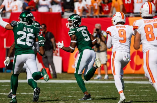 Things were still a little uncomfortable late in the first half. The Jets had just forced Tampa Bay to punt and had a chance to tie the score in the final minute when Tyrod Taylor tried to hit Garrett Wilson on the sideline. Jamel Dean had overrun his coverage of Wilson, but recovered and came back to cut in front of the receiver for the interception and a 55-yard return for a touchdown. It was Dean's first TD since 2020.