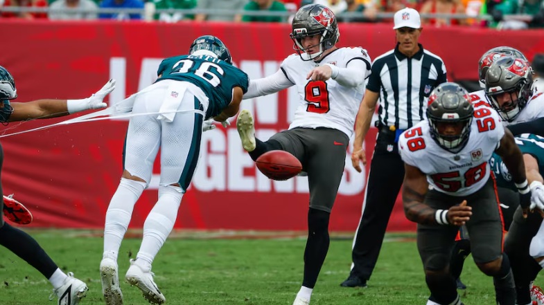 Mayfield brought the Bucs back with quick touchdown strikes of 77 yards to Emeka Egbuka and 72 yards to Bucky Irving in the second half. Tampa Bay also benefitted from six first downs off penalties on the Eagles. But two turnovers their first of the year and another blocked punt doomed the Bucs.