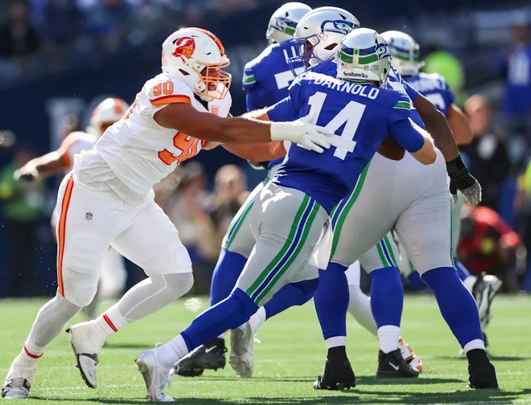 Darnold was perfect until his final pass, which bounced off the helmet of Bucs defensive lineman Logan Hall and into the arms of David. Before that pass, Darnold had completed 28 of 33 attempts for 341 yards and four touchdowns. But that's how life in the margins can be in the NFL. Seattle has played three one-score games through five weeks. In Week 1, Darnold fumbled inside the 10-yard line and Seattle lost. In Week 4, he led a game-winning drive against Arizona. On Sunday, Darnold and the offense stalled again somewhat due to a bad bounce with the game on the line.