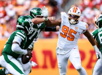 Had a surprisingly-good rookie season for a 5th round pick and became a starter for the second half of the season. More of a run-stopper than pure pass rusher but already looking an excellent selection. Played in 49 college games at Miami and then SMU.