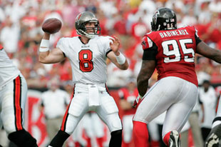Nevertheless, the Bucs couldn't quite put the Falcons away. They were still in the game in the fourth quarter and mounting a comeback of sorts when Earnest Graham broke off a 68-yard touchdown run to close the deal. That gave a more impressive look to the final score and the final stat sheet, but up to that point the Griese-led offense had produced just 222 yards (32 yards less than the Falcons). Penalties were a big part of the problem. The Bucs were penalized six times for 45 yards on offense through the first three quarters. But poor execution was part of the problem, too.