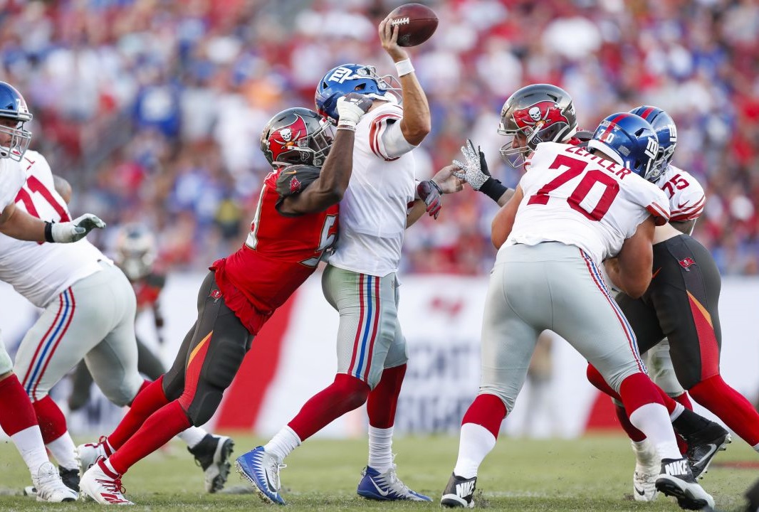 Three of Barrett’s sacks came over a 10 defensive-play stretch at the end of the third quarter and into the fourth quarter as the Bucs tried to put the game away after the Giants came within three points.