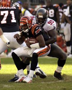Sunday's latest tragicomedy, which, at 35-7, was no different, seemed briefly that it would be. For exactly two minutes and 30 seconds, the Bengals actually led the Tampa Bay Buccaneers. The first lead of the season was the result of a touchdown by the Cincinnati defense, which goes without saying; the offense hasn't scored one in the first half this season. Brian Simmons snatched a pass, carried it 51 yards, and woo-hoo, whaddya know.