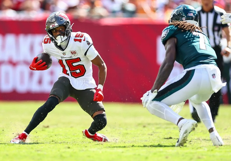 Mayfield finished the game with 289 yards on 22-of-40 passing, with the two long touchdowns and one interception, his first of the season. Both Egbuka and Irving topped 100 receiving yards, with Egbuka continuing the red-hot start to his rookie season with four catches for 101 yards and a score. However, he was targeted 10 times, as was Godwin, as the Eagles got strong coverage efforts from second-year cornerbacks Quinyon Mitchell and Cooper DeJean, who combined for seven passes defensed, five by Mitchell. Irving also ran for 63 yards to finish with 165 yards from scrimmage.