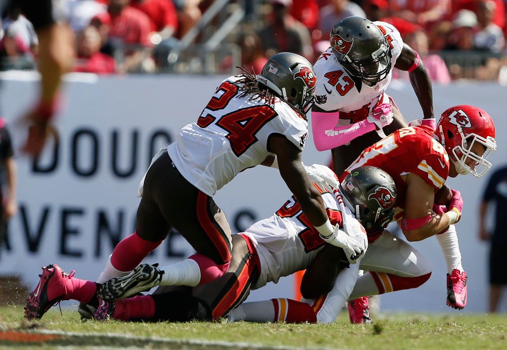 Kansas City hit this game with the second best rushing attack in football and the NFL's leading rusher in Jamaal Charles. Last week against the Ravens, Kansas City had 214 yards rushing and Charles made 140 of those. The Bucs allowed 80 yards rushing. Charles had 40. This rush defense seems the realest deal the Bucs have right now.