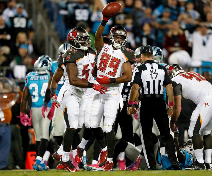 A missing piece to the Bucs puzzle this season has been takeaways. Not so Monday. The Bucs had four takeaways — twice as many as they had coming in — and that, as much as anything, sparked Tampa Bay's victory. The biggest of all? Cornerback Brent Grimes picking off an Anderson pass in the end zone with the scored tied, 14-14, and 8:39 left in the fourth quarter. The only nit? The four takeaways resulted in only three points. On the positive side, it did stop the Panthers from scoring. And you know that Miko Grimes is happy today. GRADE: A.
