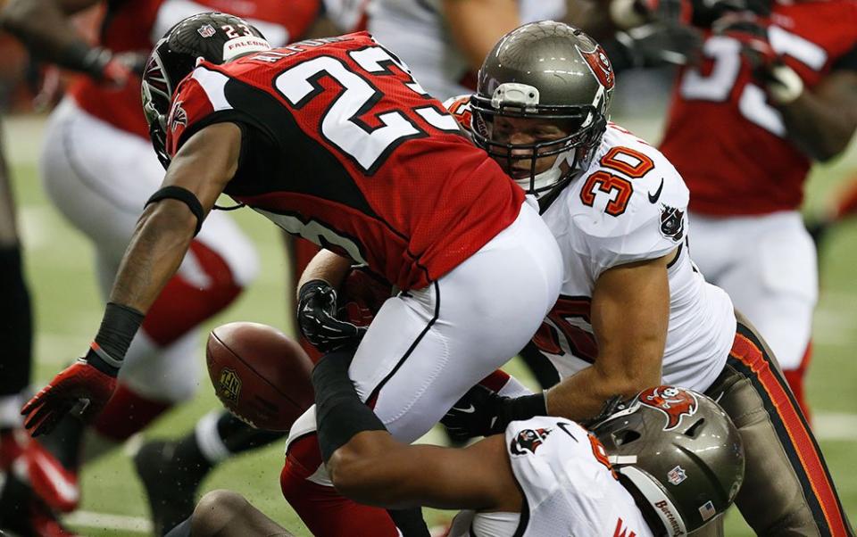 A roughing-the-passer call against end Trevor Scott on third-and-11 from the Atlanta 16-yard line late in the first quarter wiped out an incompletion and gave the Falcons new life. They scored a touchdown just six plays later on Matt Ryan’s 19-yard pass to Jacquizz Rodgers. Coming after Atlanta took a 7-0 lead on Thomas DeCoud’s 30-yard touchdown return of a Mike Glennon fumble on the seventh play of the game, Rodgers’ touchdown put the Bucs in a 14-0 early in the second quarter.