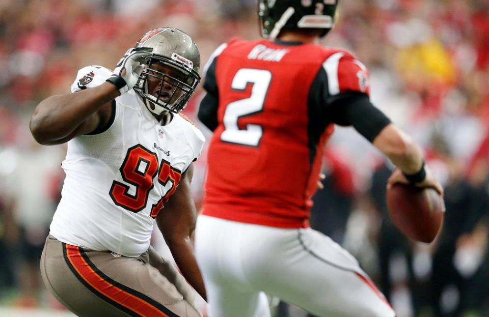 Mistakes plagued the Bucs early: An underthrown deep ball on their first offensive play; dropped passes by Jackson and Crabtree a false start on third-and-six and another one third-and-four; a roughing the passer penalty on DE Trevor Scott that erased a third-down incompletion. Worst of all, of course, was the Glennon fumble on Tampa Bay’s third play from scrimmage that turned into a 30-yard touchdown for DeCoud.