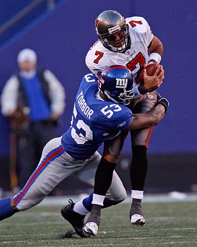 Not necessarily the kind of conditions you would want to put the game in the hands of rookie quarterback Bruce Gradkowski. But that’s exactly what Jon Gruden did as Gradkowski attempted 48 passes in Sunday’s 17-3 loss to the Giants. Although the Bucs never trailed by more than two scores until late in the fourth quarter, they abandoned the running game and threw caution to the swirling wind.
