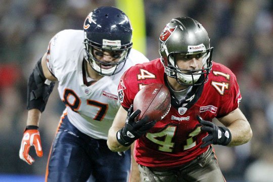 Earlier in the fourth quarter, still trailing by 16, Freeman hit TE Kellen Winslow on a two-yard touchdown pass to complete a 21-yard drive that followed Corey Lynch’s one-handed interception. The Bucs went for two to try to pull within seven points but the attempt failed. Lynch, who replaced Jackson after the starting safety suffered a hamstring injury in the first half, got the Bucs their second turnover of the game. The first was turned in by Jackson before his injury, as he intercepted a tipped pass in the first half and returned it to the Bears’ red zone to set up Connor Barth’s field goal.