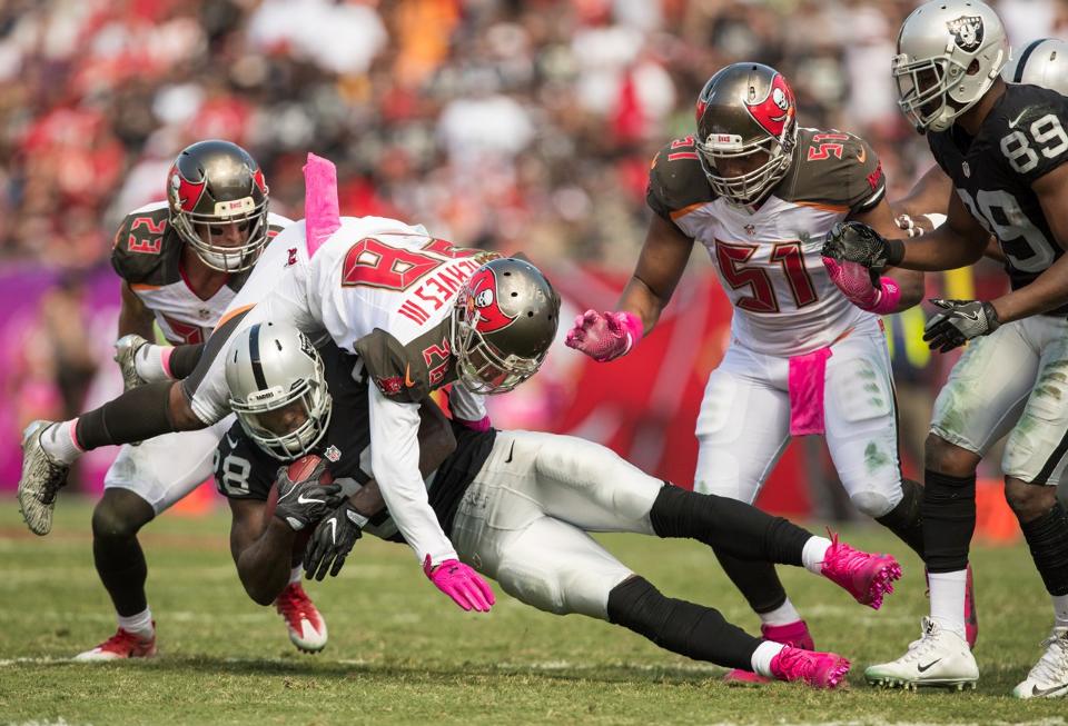 The Bucs defense - F especially the pass defense, was atrocious. It gave up 626 total yards, more than any other Bucs team in a single game. Raiders QB Derek Carr threw for 513 yards. The final play of the day was symbolic: Bucs defensive backs Jude Adjei-Barimah and Bradley McDougald bonked each other and fell to the ground as Raiders receiver Seth Roberts took it on in for the 41-yard winner. Big play after big play for the Raiders when they needed it.