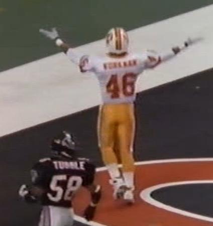 when Mike Pritchard flashed open in the rear of the end zone, the Falcons' passer sent a well-aimed missile.  Pritchard might've gotten the killer TD, but Carter smashed into the Atlanta receiver from behind. Spectators screamed for a penalty. Pritchard pleaded. Carter checked the end-zone turf to see if a flag had fallen.
