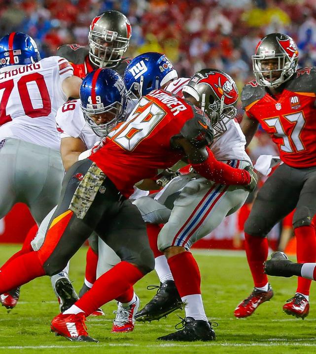 The Buccaneers committed nine penalties for 79 yards on the day, the last of which was a personal foul on DT Akeem Spence that helped the Giants to extend their final clock-killing drive into Tampa Bay territory. David also had a personal foul and a pass-interference penalty against him in the first half.