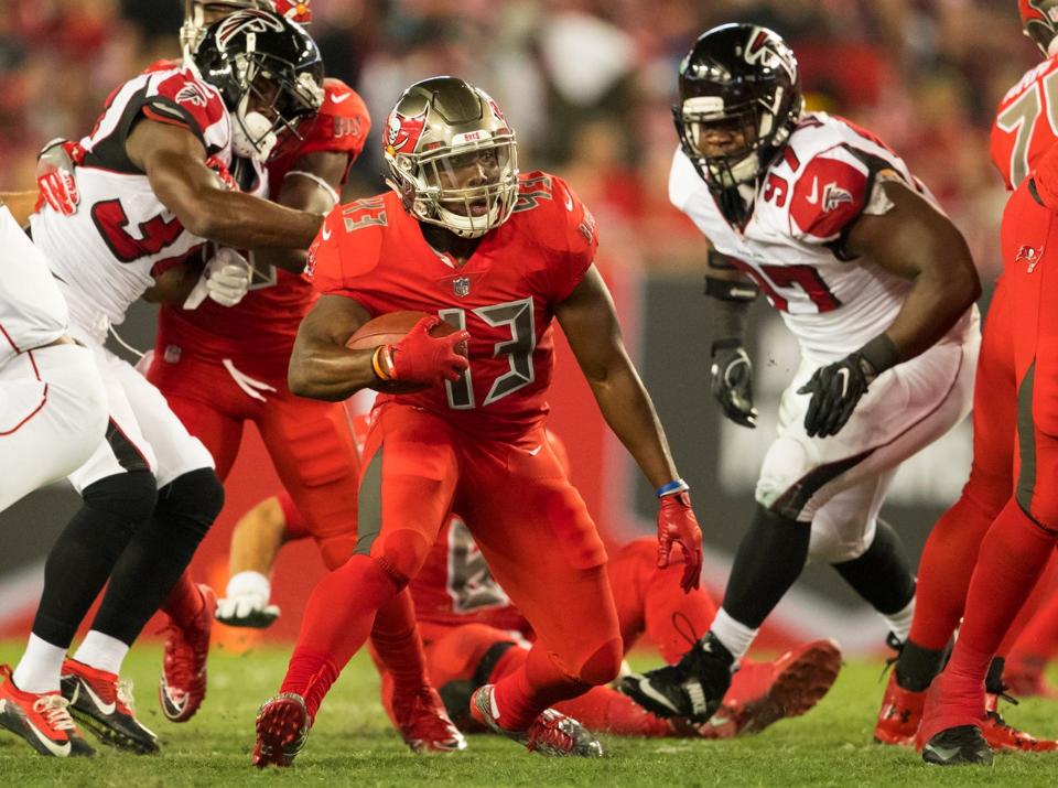 Evans came into the game tied for the NFL lead with six touchdown catches, and he added two more in the first half from Winston. That gives Evans eight touchdowns in eight games, on pace to break his team record of 12, set as a rookie in 2014.