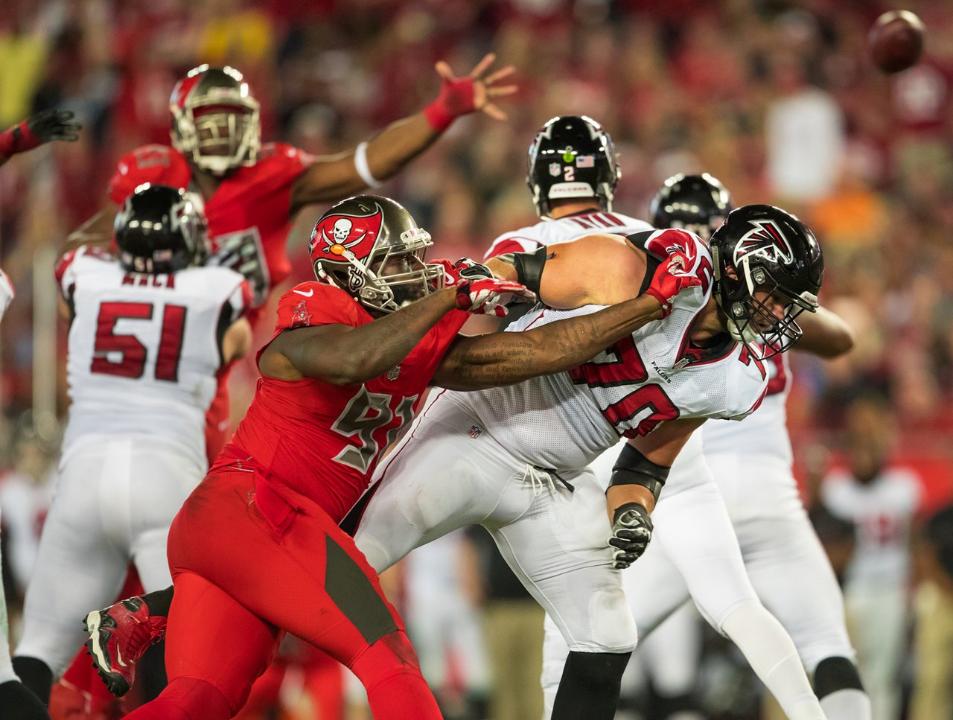 Because they lost in overtime to the Raiders on Sunday, with their cornerbacks on the field for 93 plays, the Bucs' defense was never a match for Atlanta. The pass rush got to Ryan for only two sacks, including a forced fumble by Gerald McCoy that set up the Bucs' second touchdown. William Gholston had the other sack. But most of the time, Ryan had all the time in the world to scan the field for Jones and No. 2 receiver Mohammed Sanu.