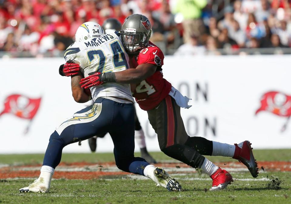 The Bucs gained a first down at the San Diego 34 on Freeman’s lob over several blitzers to Martin, and the Chargers had to burn their second timeout with 2:53 remaining. San Diego eventually stopped a Martin sweep on third down at the 27, but Barth came on to boot a 45-yard field goal that restored Tampa Bay’s 10-point lead with just 1:07 to play.
