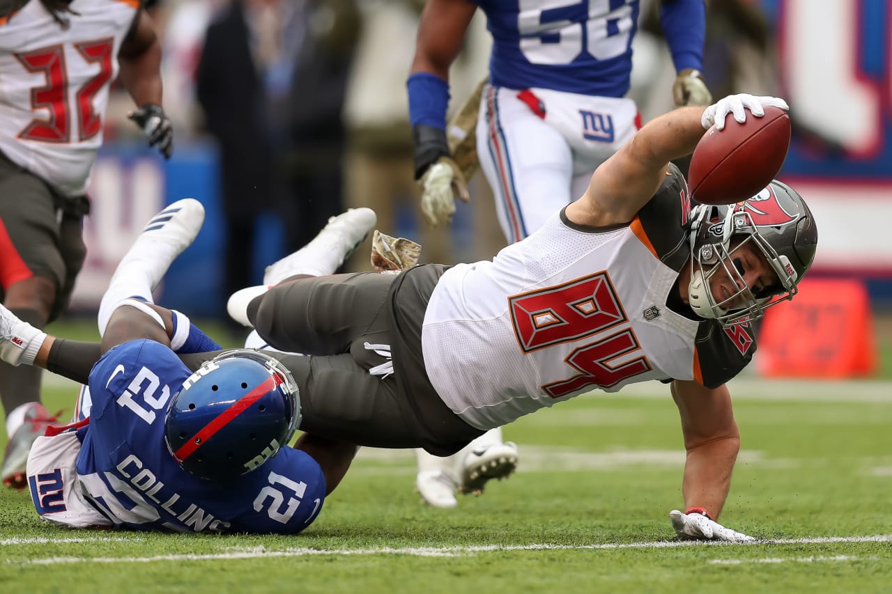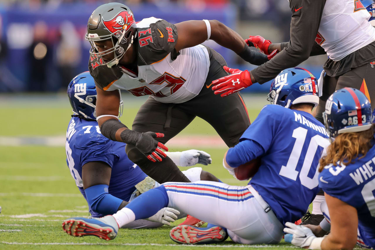 Pierre-Paul did enjoy his homecoming with 1.5 sacks, giving him a team-high 9.5 on the season. The Bucs dropped Eli Manning four times, but Manning completed all but one of his 18 passes and threw touchdown tosses to star receiver Odell Beckham and do-everything rookie back Saquon Barkley. Barkley finished with 152 yards from scrimmage and three touchdowns, including a third-down scoring run in the fourth quarter that kept the Giants up by two scores with four minutes to play.