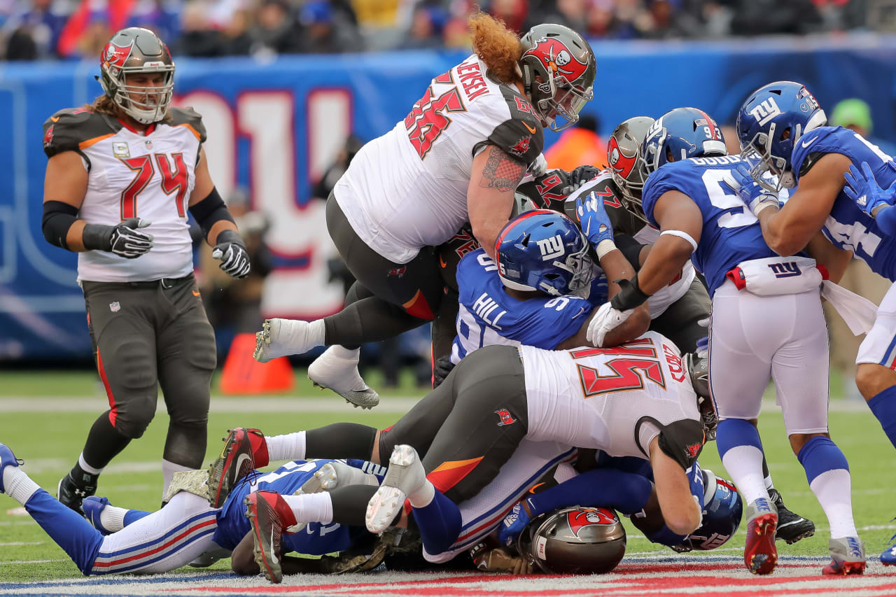 The loss was the Buccaneers' seventh in their last eight games after a promising 2-0 start, dropping their record to 3-7 on the season and seriously dimming any remaining playoff hopes. By losing the takeaway battle to the Giants by a net four, Tampa Bay lowered its overall 2018 turnover ratio to -23, the worst mark in the NFL. The Buccaneers' defense has not produced a takeaway since the first quarter of its Week Three loss to Pittsburgh, a span of 31 quarters. The lack of takeaways led to another loss on Sunday despite a 510-359 edge in total yardage.