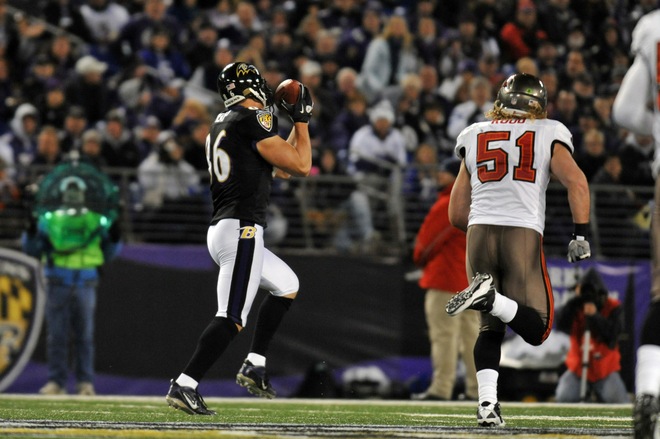 The real breaking point came at the end of the half, though. On third-and-3 at the Bucs' 34, Ravens quarterback Joe Flacco missed a connection with T.J. Houshmandzadeh. That was a victory for the Bucs — or it was until a flag came fluttering toward rookie defensive back Myron Lewis.
