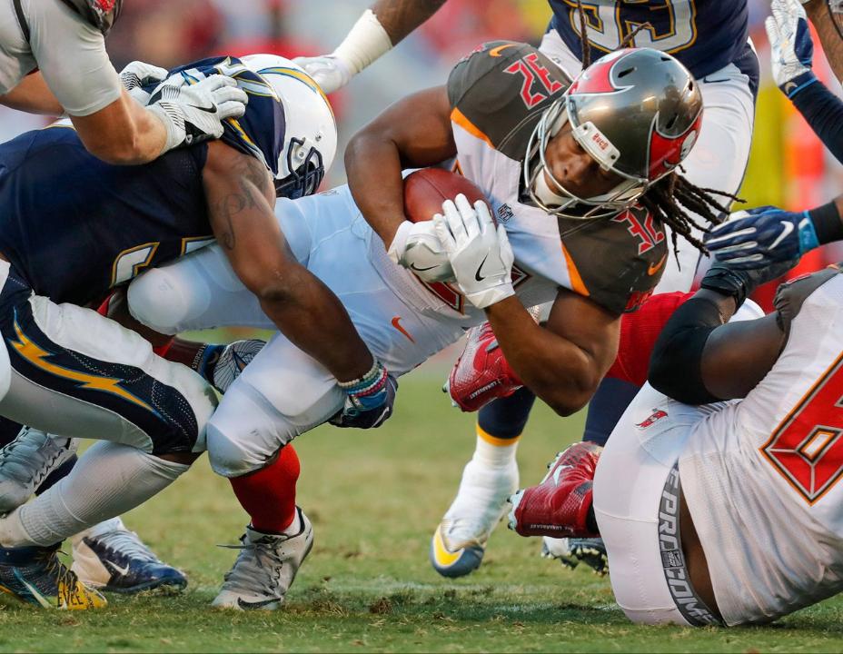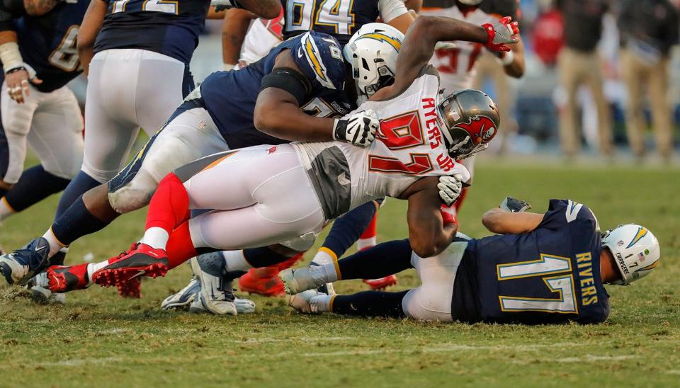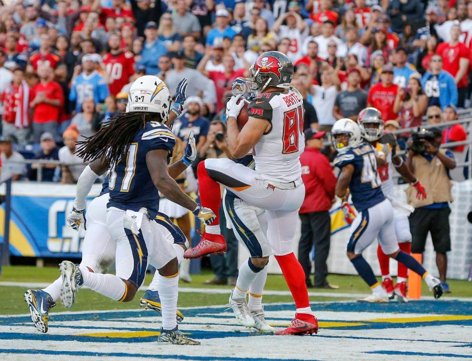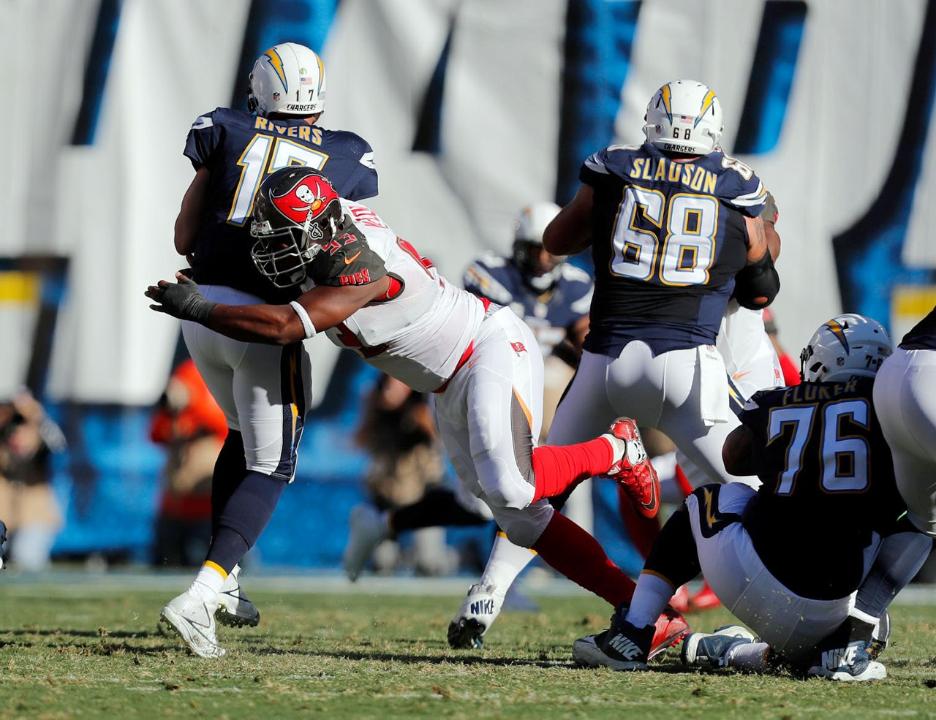 One big play each by special teams and the defense and the Bucs had their first lead of the day. First, Bryan Anger blasted a high, 54-yard punt that Isaiah Burse fair caught at the San Diego eight. On first down, Rivers faked a handoff and tried to throw a quick slant to Tyrell Williams but Hargreaves got an arm around to deflect it and David picked the ball out of the air and returned it 15 yards for a touchdown.