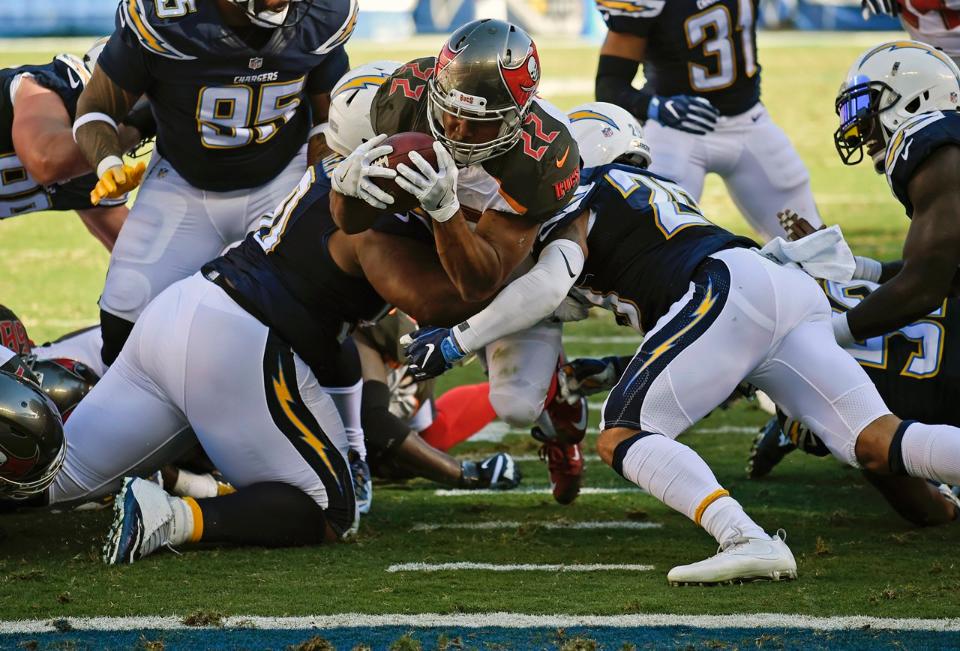 The lead changed hands three times in the second half, as the Buccaneers went up 17-14 on Lavonte David's 15-yard pick-six before the Chargers answered with Philip Rivers' 40-yard touchdown pass to WR Dontrelle Inman. Inman was also the intended receiver on Rivers' last pass of the day, but Tandy was there to prevent the tying score and allow the Bucs' offense to run out the clock. Tandy was in the starting lineup for the first time to replace the injured Chris Conte, and he was one of several reserves to step up in a big way.