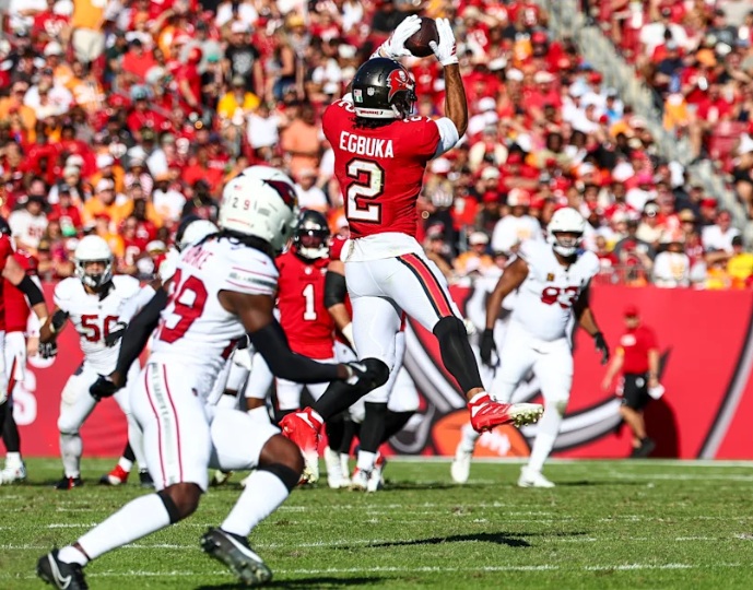 The Bucs thus took over on downs in Arizona territory. Irving made half the Cardinals defense miss on a first-down flare pass but all for just three yards, and his next run was stopped for a loss of three. A third-down seam pass to Egbuka was too tall but McLaughlin came out to drill a 57-yard field goal and make it a two-score game.