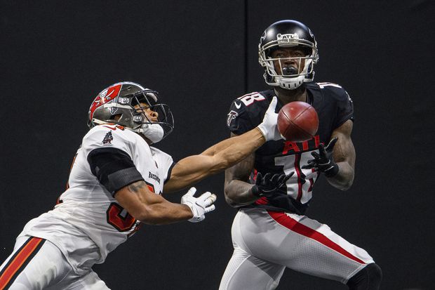 With the Falcons facing second-and-6 from the Bucs 27, Winfield followed Ridley (10 catches, 163 yards, one TD) on a sail route to the right corner of the end zone, lunging to deflect Ryan's pass with his left hand just as it approached Ridley's midsection.