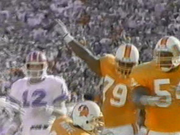 The Bucs were ahead 10-2, but Buffalo had just sacked Testaverde for a safety and was threatening to take over. The Bills had first-and-goal at the Tampa Bay 7. Then, it became fourth down, with Buffalo 36 inches shy of a touchdown.