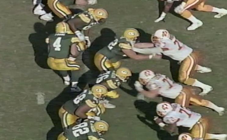Electricity in the Big Sombrero would rapidly dim, as though some Scrooge had unplugged a tree of promise. Green Bay played with championship skills. Brett Favre quarterbacked beautifully, Sterling Sharpe torturing Tampa Bay's secondary for three quick touchdown catches. The Bucs stumbled backward into a 28-6 halftime chasm. Bah, humBuc!