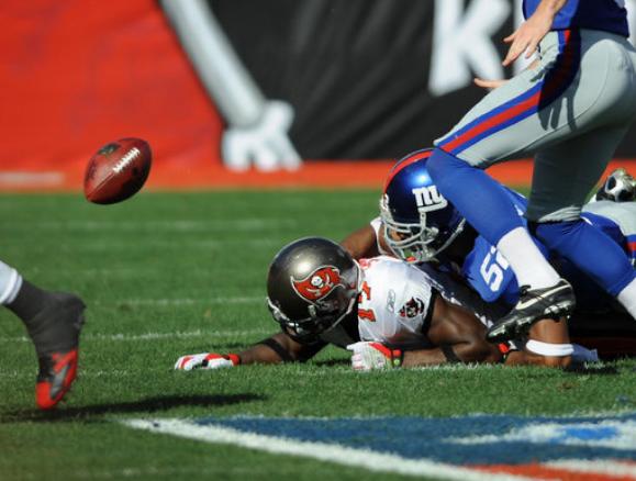 The Bucs' defense failed to produce a turnover for just the third time all season. Meanwhile, WR Micheal Spurlock gave the Giants a chance to increase their lead to 10 points when he fumbled the opening kickoff of the second half.