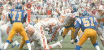 GAME HIGHLIGHTS Video footage from the expansion season is limited to occasional clips from the NFL Films season highlight film as NBC who broadcast all 14 games that season, destroyed the master tapes some years later leaving none of the games available in the way other games from Buccaneer history are. However I have been able to obtain the coverage from NFL Films’ Review of the Week in which the Buccaneers were featured, sometimes though not in the most flattering of highlights. The left video are the selected Buccaneer clips. The right video is the one from the Review of the Week.