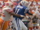 The Bucs dominated the first half of this game, holding the ball for 23 minutes and outgaining the Colts 182-68 in total yardage, yet only had a seven point advantage after a deflected interception gave Indianapolis the ball at the Tampa 2-yard line. After half-time, it was all Indianapolis as Vinny was sacked four times in spite of the Buc offense amassing 28 first downs and over 350 yards of total offense.