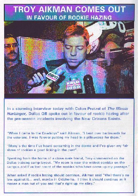 Troy Aikman's sexuality and rookie hazing