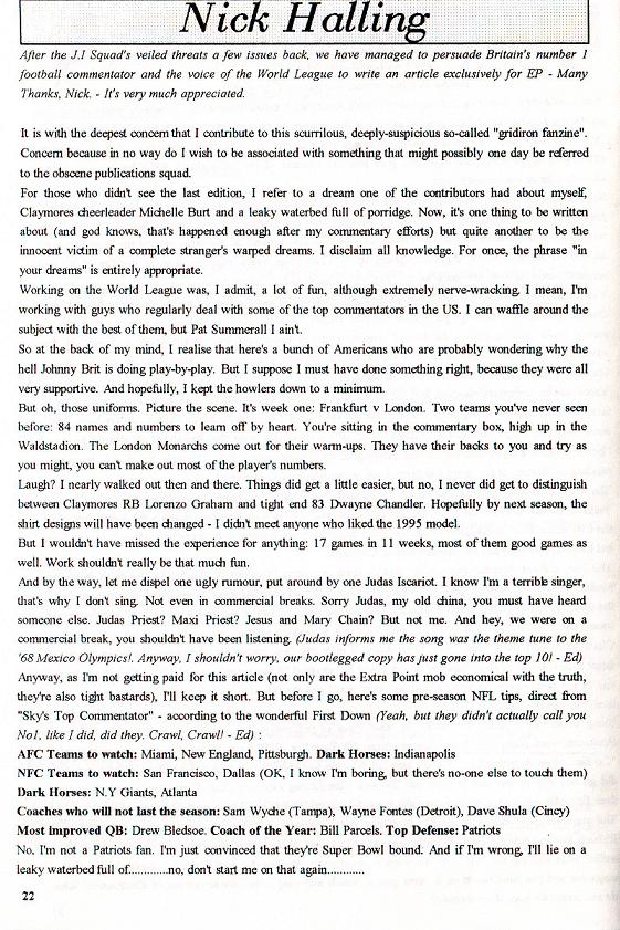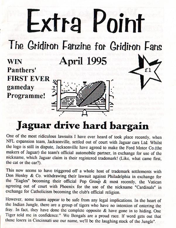 on sale only in Sportspages and on subscription, Extra Point featured some of