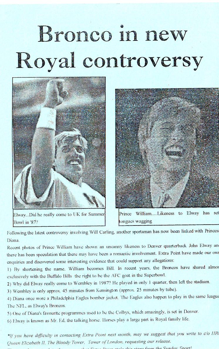 Is Prince William John Elway's love child?