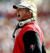 JON GRUDEN57-55 (3-2 in the post-season)The Bucs' seventh head coach came about after a search lasting nearly two months and more false starts than the 1993 Grand National. Eventually Tampa Bay got their man but at the highest price ever paid for a head coach as two No.1 picks, a No.2 and a No.3 pick and the small matter of $8M went from the Bucs to the Raiders. Gruden also got a five-year contract from the Glazers in moving across America and the youngest head coach in the NFL took up his position in February 2003. Having been offensive co-ordinator of the Eagles for three years, Al Davis made Gruden head coach of the Raiders in 1988 at the age of 34. He fashioned a 40-28 mark in four seasons, never posting a losing record and going 2-2 in the playoffs. But with speculation that he would not be kept on after the 2002 season and not wanting to be a lame duck coach, he switched California for Florida and returned to Tampa where his father had once scouted for John McKay and a young Jon Gruden had played QB at One Buc Place with the likes of Doug Williams. The results spoke for themselves. Improving the moribund offense throughout his first season and turning the defense totally over to Monte Kiffin, Gruden became the youngest coach ever to win a Super Bowl as the Buccaneers ended 27 years of frustration by destroying his old team 48-21 in San Diego. Two further division titles and playoff appearances followed in 2005 and 2007 but after a four-game losing streak to end the 2008 season at 9-7, Gruden was sacked along with his GM Bruce Allen. His popular style soon saw him enter the TV world with a series of roles at ESPN including draft day analysis and the colour role on Monday Night Football alongside Mike Tirico. He returned to the coaching sideline with the Oakland Raiders in 2018 but was sacked during 2021 and also removed from the Buccaneer Ring of Honor.Click here for a collection of pictures from his Buccaneer coaching career