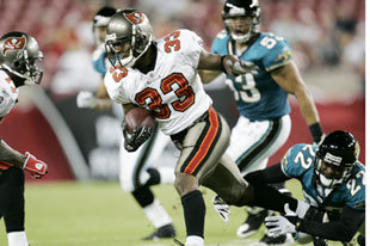 The Bucs' final selection from the 2007 draft who spent most of the year on the practice squad but who was activated twice and finally saw NFL action during the season finale. Was released in the final roster cutdown in 2008 and went on to play three seasons as a back-up with the St.Louis Rams.