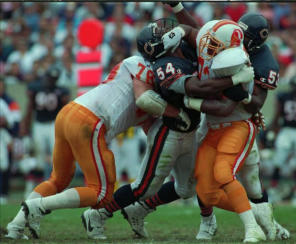 Veteran offensive tackle who came to Tampa after many seasons starting for the Vikings. Got hurt at mid-season and after being placed on IR, retired from the NFL at the end of 1994. Was originally a 3rd round pick of the Vikings in 1981 who played over 200 games in his entire NFL career